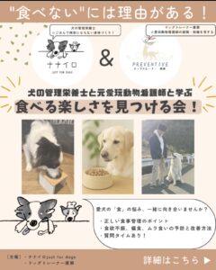 【イベント詳細】「食べる楽しさを見つける会」開催します!わんちゃんの「ごはん、食べない…」そんなお悩み、ありませんか?実は、“食べない”には理由があります。今回のイベントでは、犬の管理栄養士さんと元動